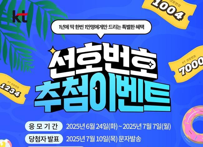 KT(대표이사 김영섭)가 통신 3사 중 올해 처음으로 '선호번호 추첨 이벤트'를 오는 7월 7일까지 진행한다고 24일 밝혔다.