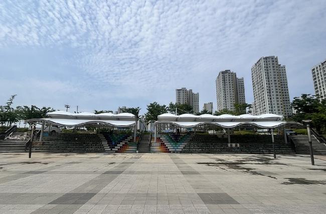하남시, 미사호수공원 계단광장에 조형쉐이드 추가…쉼터 환경 개선