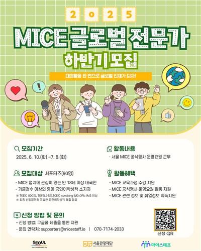 서울관광재단(대표이사 길기연)은 서울 MICE 미래인재 육성을 위해 2025년 하반기 MICE 글로벌 전문가를 7월 8일(화)까지 모집한다고 밝혔다.