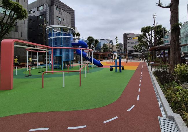 또한 놀이시설 중심으로 순환형 트랙과 그늘막을 설치하고 주변으로 사계절 아름다운 꽃이 피는 다양한 꽃나무를 식재해 도심 속에서 자연의 정취를 느낄 수 있도록 세심한 배려를 더했다.