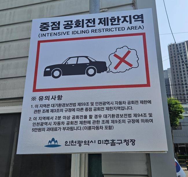 이는 '인천시 자동차 공회전 제한에 관한 조례' 개정에 따른 조치로, 올해부터 인천시 전 지역(옹진군은 영흥면만 해당)이 공회전 제한 지역으로 확대되고, 기존 제한 대상에 포함되지 않았던 이륜자동차(오토바이)도 새롭게 포함되는 등 관련 제도가 한층 강화됐다.