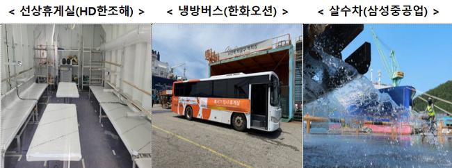 주요 조선사들은 휴식시간 확대, 선상 휴게실 설치, 살수차 운용 등 자체 대책을 시행하고 있는 것으로 나타났으며, 박 국장은 “수주 물량 증가로 현장이 바쁘지만, 폭염 시 작업인력의 건강을 최우선에 두고 철저한 안전관리에 만전을 기해달라”고 당부했다.