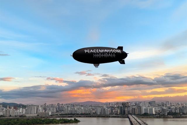 서울 여의도 상공에 ‘피스마이너스원 하이볼’ 비행선이 날고있다