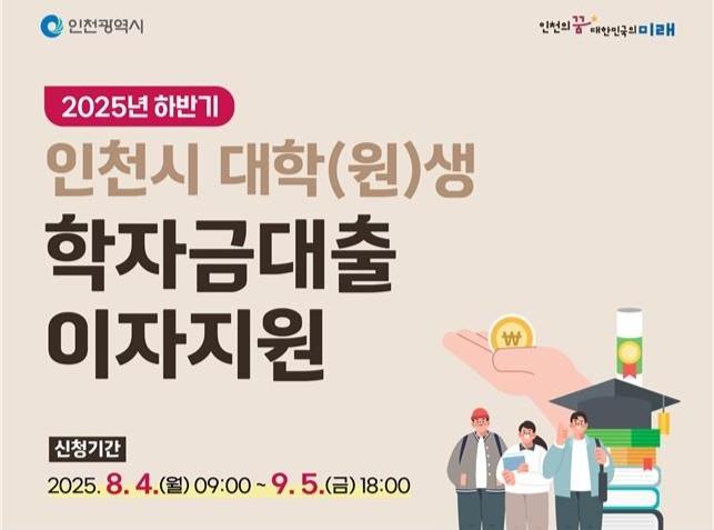 인천광역시(시장 유정복)는 대학(원)생들의 학자금대출 부담을 줄이기 위해 2025년 하반기 학자금대출 이자 지원신청을 오는 8월 4일부터 접수한다고 밝혔다.