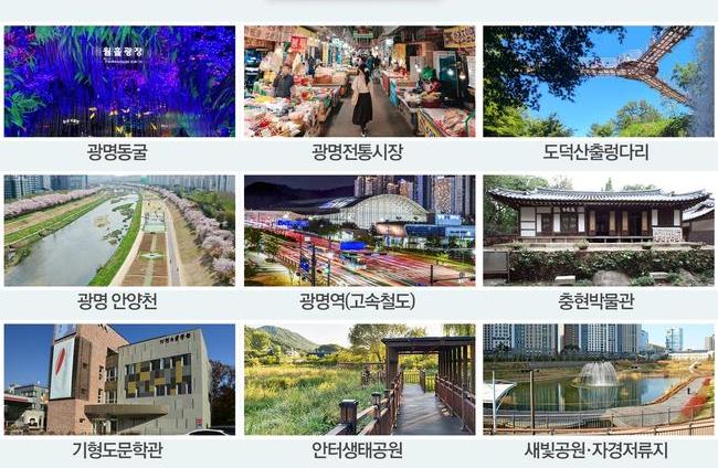 선정지는 ▲광명동굴 ▲광명전통시장 ▲도덕산 출렁다리 ▲광명 안양천 ▲광명역(고속철도) ▲충현박물관 ▲기형도문학관 ▲안터생태공원 ▲새빛공원·자경저류지 등이다.