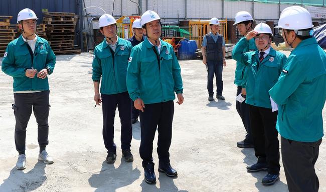 지난달 25일, 근로복지공단 박종길 이사장이 인천 남동구 구월동 경인지역본부 신축공사 현장에서 안전경영을 실시하고 있다.
