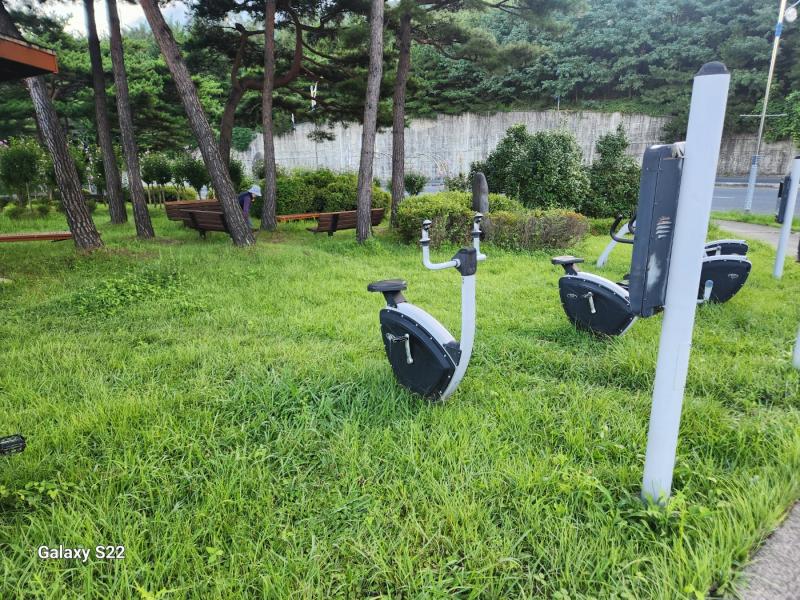 하지만 최근 잦은 비와 무더위가 겹치며 운동 기구 주변에 잡초가 무성하게 자라 이용에 큰 불편을 주고 있다. 일부 구간은 잡풀이 자라 시설 접근조차 어려운 상황이다.