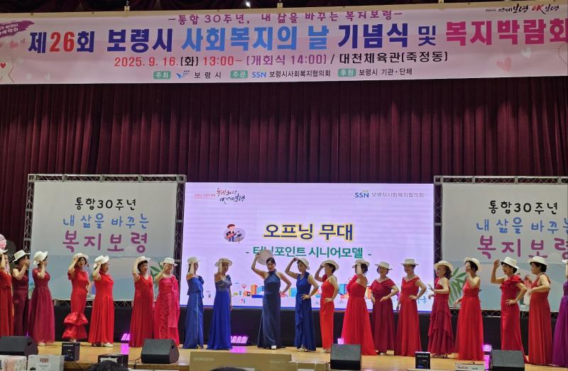 시니어 문화동아리 ‘터닝포인트 시니어모델’이 올해 연중 약 20회의 지역 행사에 참여하며 시니어의 자기계발을 지역사회 봉사로 확장해 왔다. 특히 어제 보령 대천체육관에서 열린 사회복지의 날 기념식 및 복지박람회에서는 오프닝 무대를 맡아 완성도 높은 워킹 퍼포먼스로 큰 호응을 얻었다.