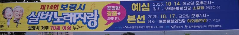보령시는 지역 어르신의 재능 발굴과 여가 활성화를 위한 ‘제14회 실버노래자랑’을 개최한다. 예심은 오는 14일(화) 오후 2시 보령문화의전당 소강당에서 진행되며, 본선은 10월 17일(금) 오후 1시 같은 장소 야외 공연장에서 열린다.