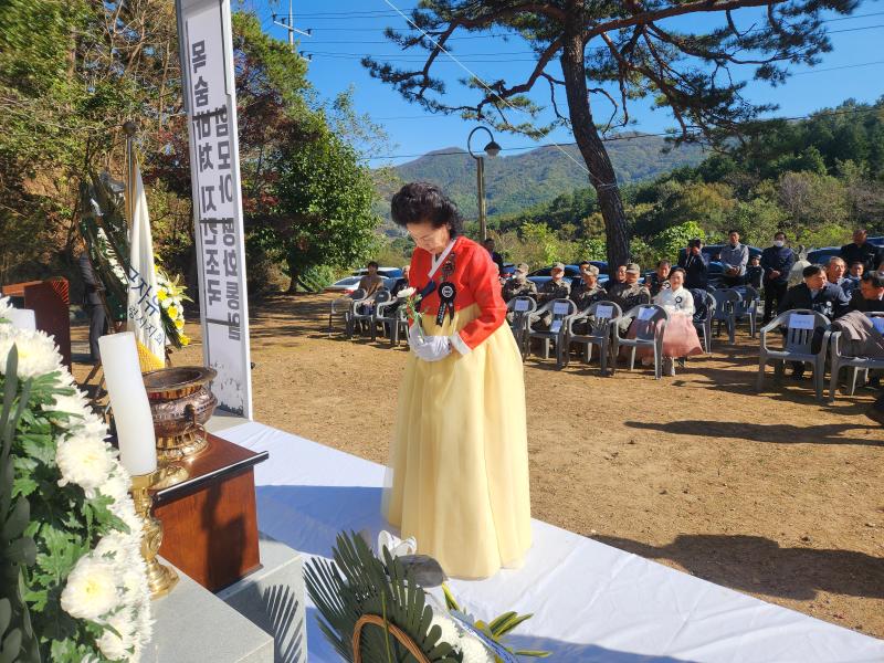 행사는 합동 위령탑에 대한 헌화와 분향을 시작으로 국민의례, 내빈 소개, 근의장대의 조총례, 유족 및 기관·단체 현황 보고, 종교 의식, 추모회장 추념사, 기관 단체장 추도사, 여성회장 조시 낭독 순으로 엄숙하게 진행됐다. 참석자들은 묵념과 조총례를 통해 희생자들에 대한 경의를 표하고, 유가족들에게 위로의 뜻을 전했다.