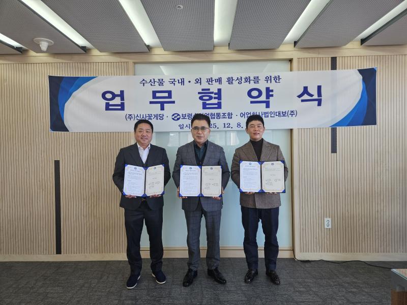보령의 어업회사 법인 대보(주)는 2025년 12월 8일, 보령수협 및 (주)신사꽃게당과 함께 수산물의 국내외 판매 활성화를 위한 업무협약(MOU)을 체결했다. 이번 협약을 통해 대보(주)는 보다 안정적인 원물 수급 체계와 판로 확보라는 두 가지 기반을 동시에 갖추게 됐다.