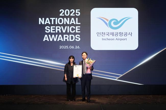 인천국제공항공사(사장 이학재)는 산업정책연구원 주관으로 26일 서울시 강남구 엘타워호텔에서 열린 '2025 국가서비스대상 시상식'에서 공항 환승 서비스 부문 대상을 수상했다고 27일 밝혔다.