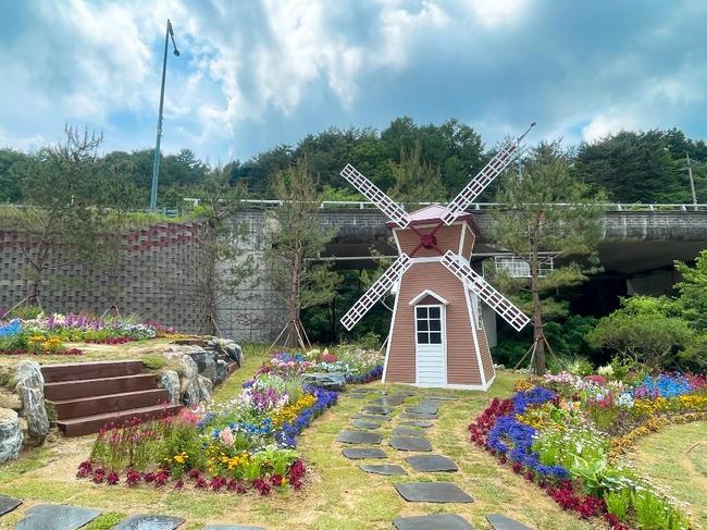 시는 계단식으로 조경석을 정비하고, 그 위에 풍차 조형물과 형형색색의 꽃밭을 어우러지게 배치해 청계호수 산책길 초입을 산책의 시작점이자 추억을 남기는 장소로 탈바꿈시켰다.